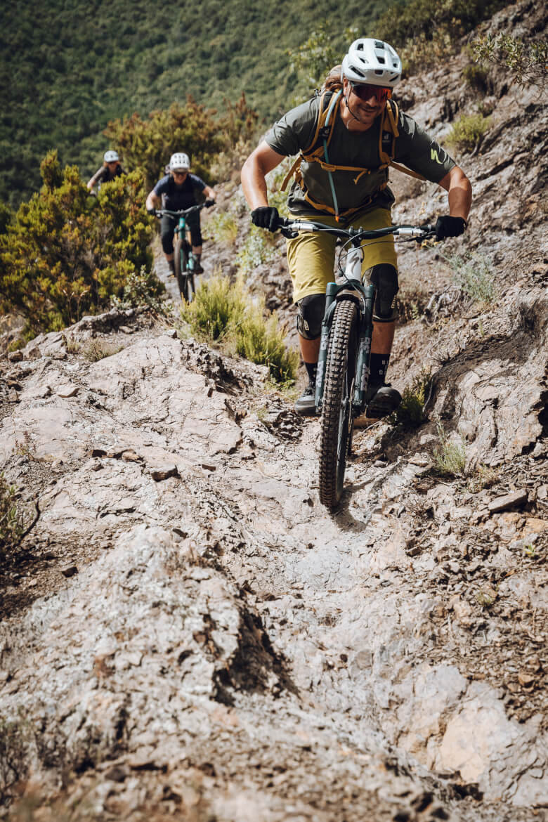 Grundsätzlich solltest du dich mindestens im Level 3+ unserer Einteilung wiederfinden, damit die MTB Camping Reise in Ligurien-Molini spaßig und stressfrei für dich ist. Du solltest auch konditionell so gut drauf sein, dass du mehrere Tage im Sattel mit ca. 500-1100 Höhenmeter pro Tag bewältigen kannst. Fahrtechnisch solltest du erfahren sein und Spaß an gebauten und natürlichen, technischen und verblockten Singletrails haben. Die Abfahrten sind sehr lang (oftmals ca. 1000 Tiefenmeter am Stück). Die Trails sind teilweise sehr schmal und manchmal am Hang, was eine erhöhte Konzentration erfordert.